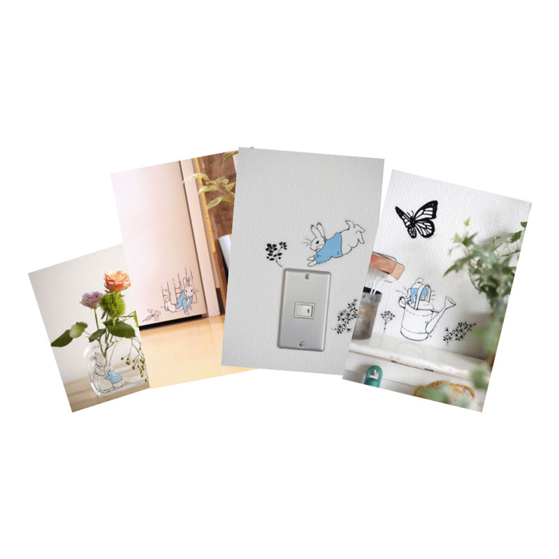 イギリス生まれ、世界中で大人気の「ピーターラビット」が、おしゃれでかわいいウォールシールになりました!さまざまなポーズのピーターなどのシール、たっぷり4シート分(各A4変型サイズ)のセットです。お部屋の壁に自由に貼って、デコレーションを楽しんで。電気のスイッチまわりや窓辺、ドアノブまわりなどを飾っても素敵。貼ってはがせるシールなので、貼り替えも自由自在です!愛らしいピーターの姿が、あなたのお部屋を癒しの空間に彩ります。