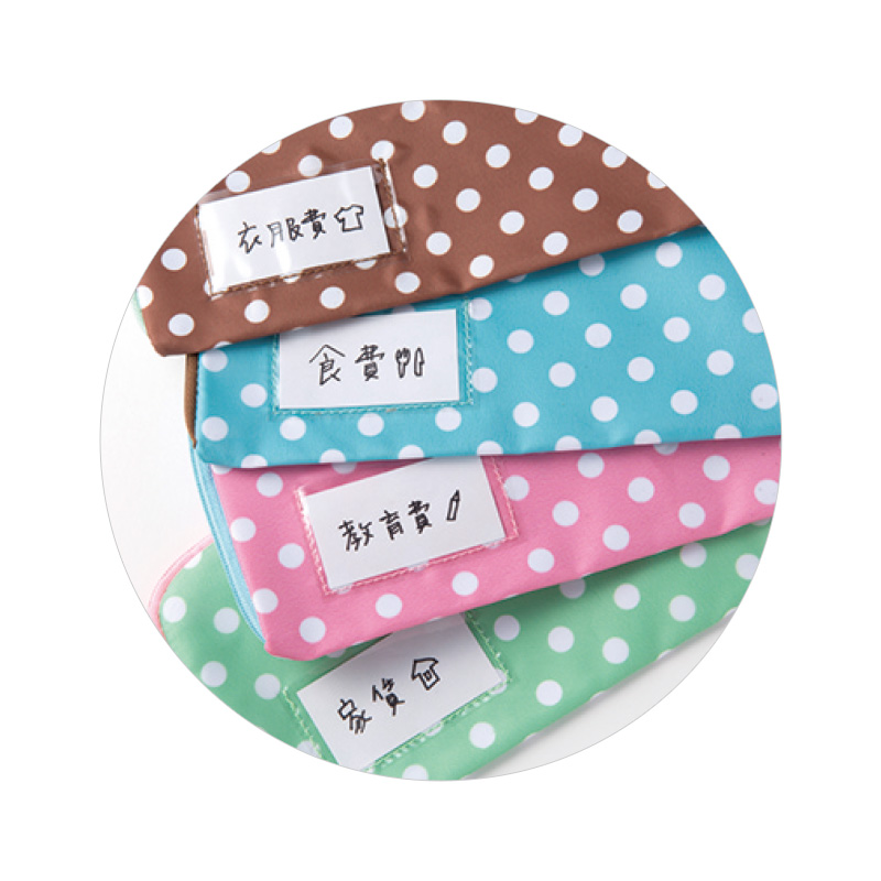 1ヵ月分のお金を1週間ごとに仕分けられるポーチが4つ入ったお札ポーチセットです。1週間ごとの仕分けだけでなく、食費や家賃、光熱費、交際費など、費目別の仕分けにしてももちろんOK。使いやすいおしゃれなデザインや、前面の透明ポケットに用途や金額を書いたメモを入れられるのもポイントです。家計簿も付いているので、あわせて使うことで、家計をかしこくスマートにやりくりできます。