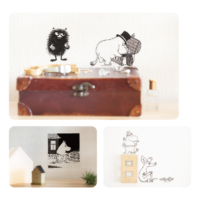 大人気キャラクター「MOOMIN」のウォールシール第2弾です。A4大のシート4枚に、シール計23点を収録。おなじみのリトルミイ、ムーミントロールやスナフキンはもちろん、スティンキー、スニフ、トゥーティッキなど、ムーミンコミックスから厳選したかわいい絵柄が満載です。モノトーンの絵柄が大人っぽく、壁や電気スイッチのまわりに貼るだけで、お部屋のイメージを変えることができる、インテリアのマストアイテムです。
