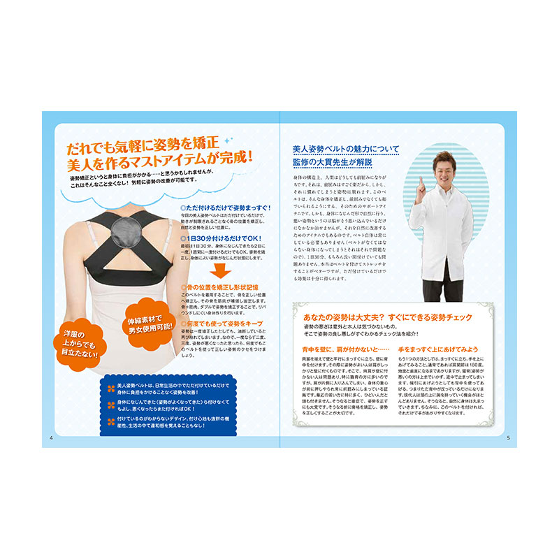 全国180店舗を展開する整体・骨盤矯正のカラダファクトリーの大貫隆博先生が監修した美人になるための姿勢矯正ベルトが付いた商品です。高機能なのにお手ごろ価格です。より効果をアップさせるためのストレッチを紹介したミニBOOKが同梱されています。