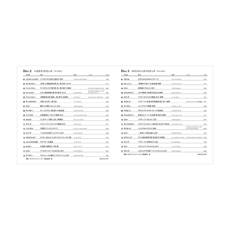 ロイヤル・フィルハーモニー管弦楽団が演奏する珠玉の名曲クラシックを70曲集めCD4枚に収録しました。誰もが知っている有名なメロディをセレクトしているので、ボリュームたっぷりでありながら、気軽に聴くことができるようになっています。本体980円(+税)で心が洗われるような素晴らしい世界へ誘うCDセットです。4枚のCDはそれぞれテーマが設定されていて、Disc1:プレミアム・クラシック、Disc2:ハピネス・クラシック、Disc3:ロマンティック・クラシック、Disc4:リラクシング・クラシックとなっています。