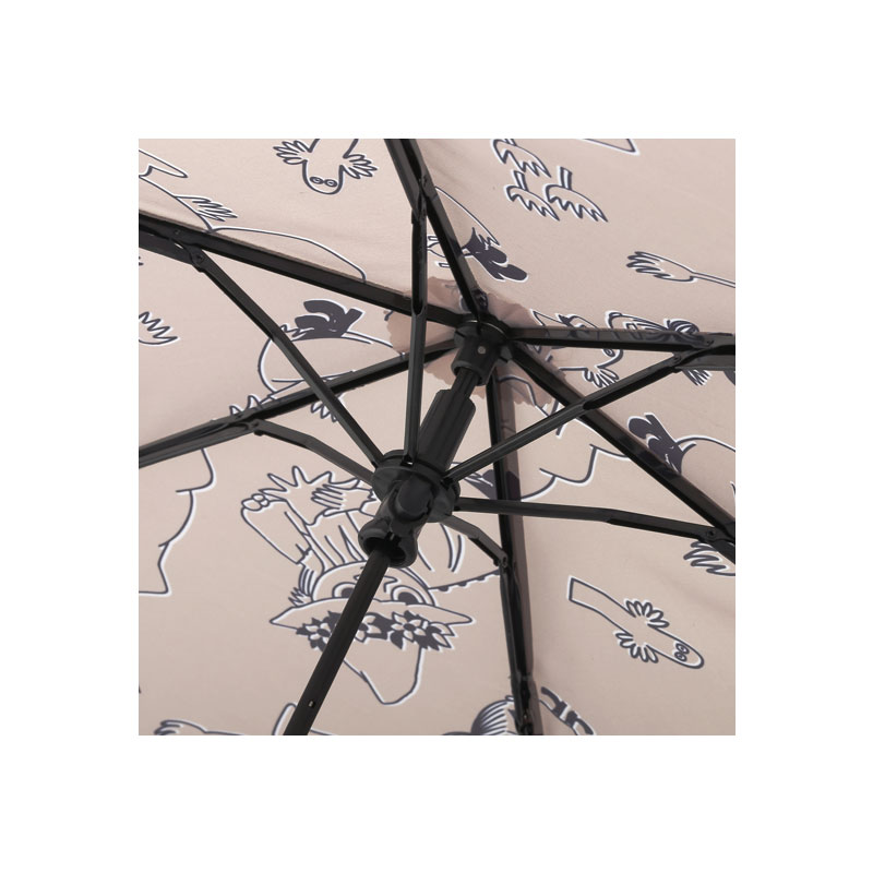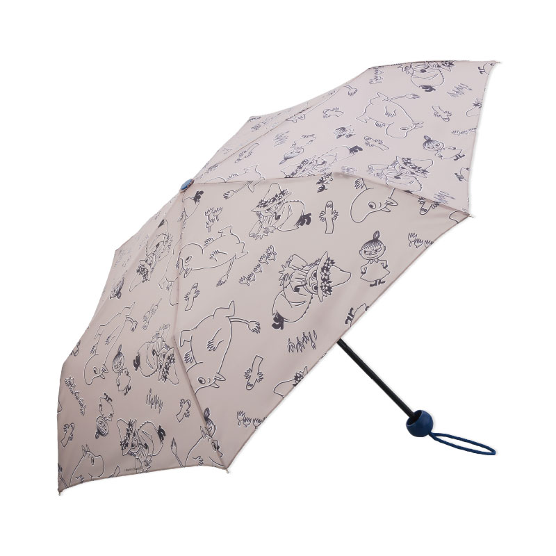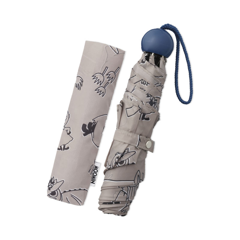 大人気「MOOMIN」の折りたたみ傘に、シックで大人かわいいグレーの新作が登場!愛しのムーミン・リトルミイ・スナフキンが描かれた柄は、雨の日のお出かけも楽しく演出してくれます。ネイビーブルーの持ち手もおしゃれなアクセントに。日傘としても使用可能なので、いつでもバッグにインして持ち歩きたいアイテムです。爪や指先にやさしい、ボタン式の開閉仕様もうれしい!