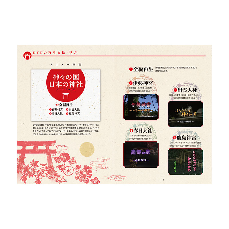 ※本DVDは映像「伊勢神宮~コメと神々の祝祭~」(平成8年撮影)、「はるかなる神々の国―出雲の神と社―」(昭和63年撮影)、「南都の華―春日大社―」(平成4年撮影)、「千古の森が秘める神話の世界―鹿島神宮―」(平成6年撮影)の内容を再編集し、収録しています。撮影当時の映像のまま収録しているため、映像の一部に粗い部分があります。あらかじめご了承ください。
