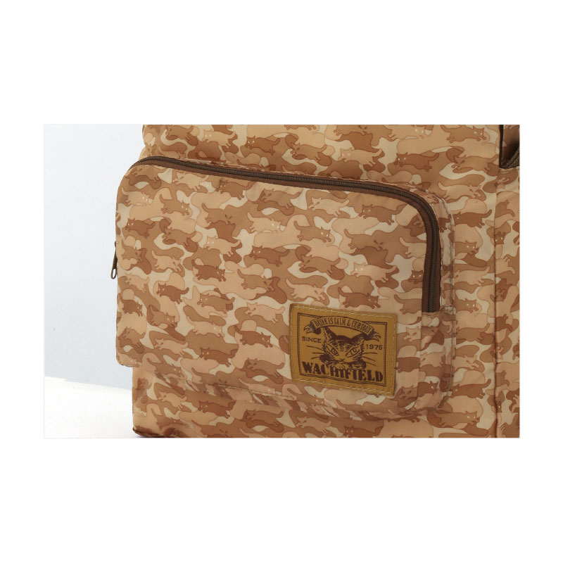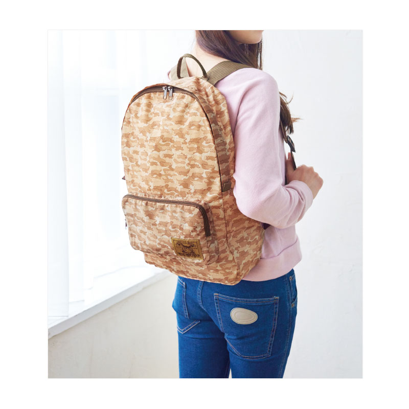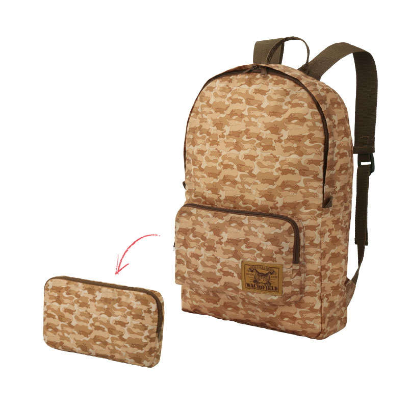 大人気の猫のダヤンシリーズから、コンパクトに折りたためるポケッタブルリュックが登場!流行の迷彩柄を、ダヤンならではの“とび猫”で表現。シックなカラーリングの大人顔に仕上がりました。旅行はもちろん、突然の荷物にも対応できるから、いつものバッグに忍ばせておけば、必要な際に大活躍。ここでしか手に入らない貴重なアイテムです。
