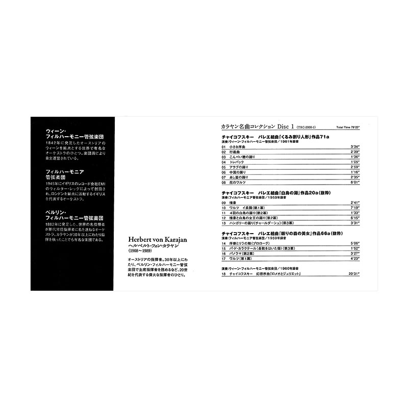 世界中で評価された、クラシック界でもっとも有名な指揮者カラヤン。彼の指揮により1950年代後半から1960年にかけて録音された音源です。終身指揮者を務めたベルリン・フィルハーモニー管弦楽団はもちろん、ウィーン・フィルハーモニー管弦楽団などが演奏する珠玉の名曲クラシックを集めてCD4枚に収録しました。ヴォリュームたっぷりでありながら、気軽に聴くことができるようになっています。本体価格980円で心が洗われるような素晴らしい世界へ誘うCDセットです。