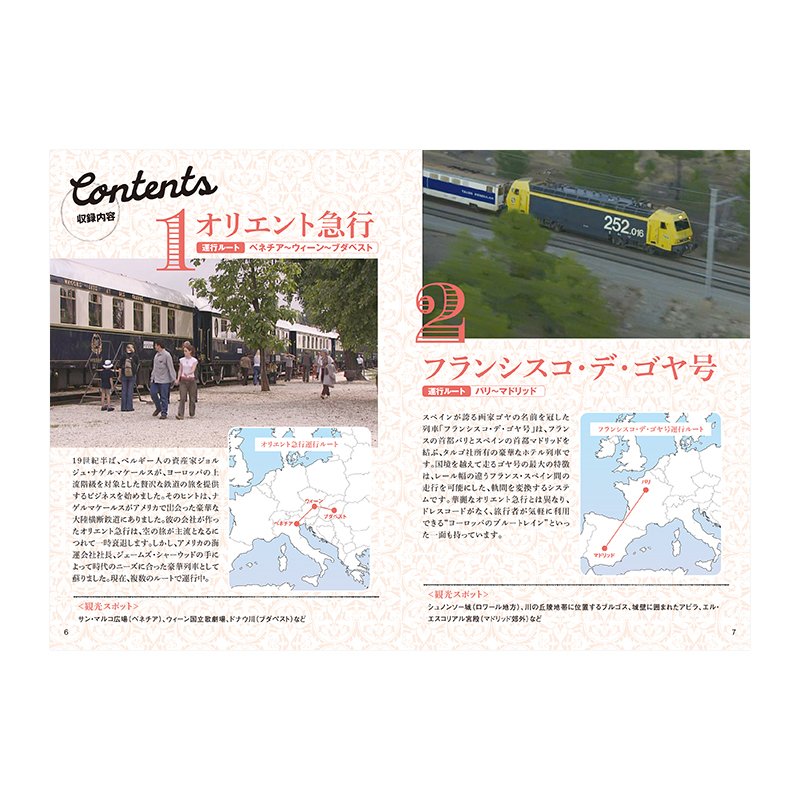 BS11で好評放送中(2015年4月時点)の人気紀行番組『世界豪華列車の旅』がついにDVD BOOKで登場!過去にもBS朝日をはじめとしたBS各局で放送されるなど、全編ピュアハイビジョンで撮影された迫力ある映像が、多くの鉄道好き、旅好きの反響を呼んできました。本誌は、過去6回の同番組から、“ヨーロッパの豪華列車の旅”の2回の放送分を収録したものです。ベネチアからウィーンを経由してブダペストへと走る「オリエント急行」と、パリとマドリッドを結ぶ「フランシスコ・デ・ゴヤ号」のそれぞれの歴史、車内の様子をつぶさに紹介しており、観ているだけで旅情をそそります。ノスタルジックでエレガントな、夢の豪華列車体験をぜひお茶の間で味わってください!