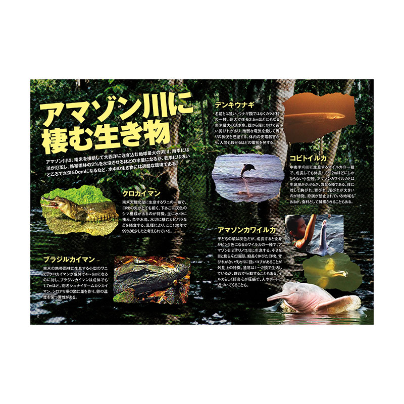 アマゾン川流域に広がる、南米の約40%を占める世界最大の熱帯雨林アマゾン。そこは多様な動植物の宝庫であると同時に、常に弱肉強食、環境に適応できるものだけが生き残れる過酷な環境でもある。本DVDでは、捕食者であるクロカイマンやジャガー、樹上に暮らすさまざまなサルたち、川辺で生きるカピバラやカメ、珍しいピンクのアマゾンカワイルカなど、アマゾンの大自然に生息する野生生物たちを多数紹介します。