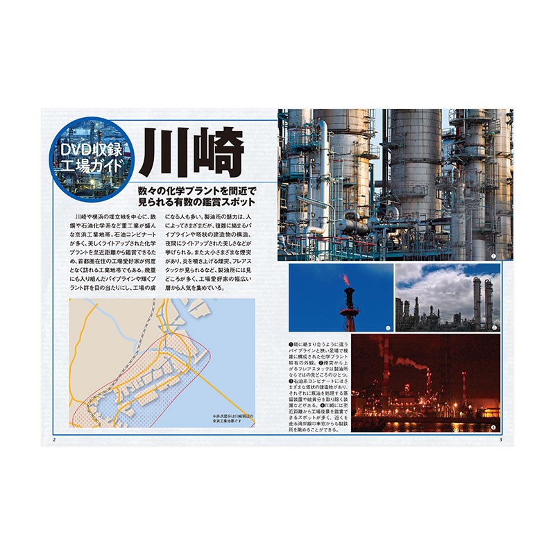 コンビナート、フレアスタック、溶鉱炉が満載! 大人のための工場鑑賞DVD!! 京浜工業地帯の石油コンビナートや京葉工業地域の製鉄所、奥多摩の石灰工場や安中の精錬所に加え、輝く化学プラント群の夜景など、魅惑の工場映像を約50分収録。絶景ポイントから撮影された工場の外観を思う存分楽しむことができます。