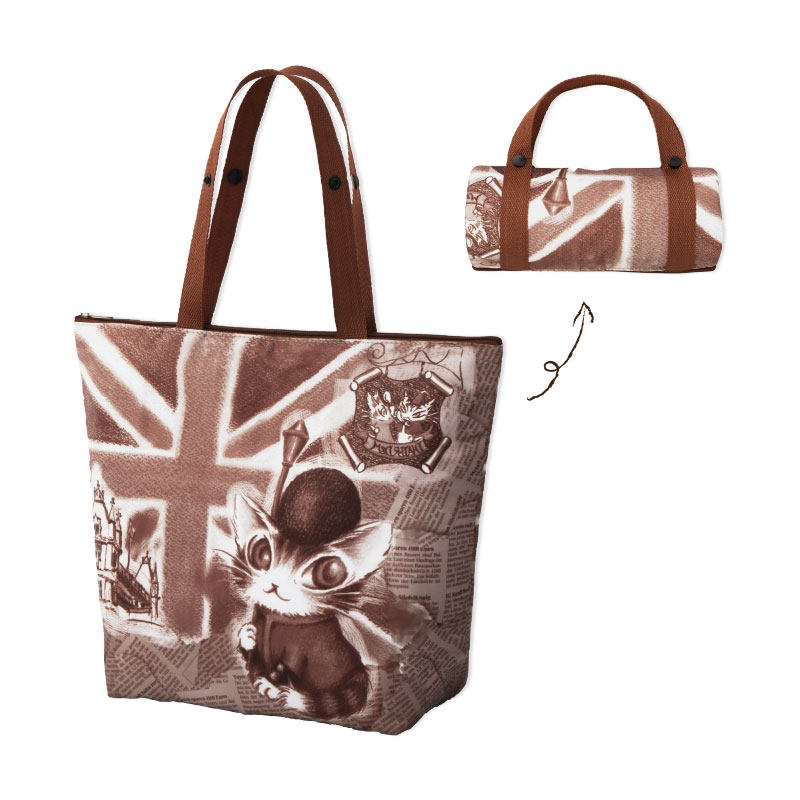 猫のダヤンのコンパクトに折りたためる保冷バッグが登場!保冷バッグの柄は、ベイビーダヤンとユニオンジャックが可愛い「ロンドン」シリーズを採用!お洋服ともコーディネイトしやすい、ブラウンのモノトーンです。コンパクトに折りたためるので、持ち運びにも便利。レジャーの際はもちろんのこと、普段のお買いものにも大活躍すること間違いなし!