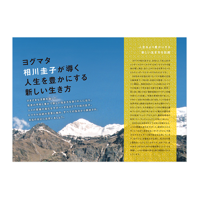 女性で初めて「究極のサマディ(悟り)」に達したシッダーマスター(サマディヨギ/ヒマラヤ大聖者)。現在、会うことのできる世界でたった2人のシッダーマスターのうちのひとり。仏教やキリスト教の源流である5000年の伝統をもつヒマラヤ秘教の正統な継承者。1991~2007年の間、計18回、インド各地で世界平和と真理の証明のため公開サマディを行う。2007年、精神指導者の最高の称号「マハ・マンダレシュワル(大僧正)」を授かる。日本、欧米などで、真の幸せと悟りのための各種研修と瞑想合宿を開催。2016年6月以降3回、国連の平和のイベントで主賓スピーチを行う。2019年8月にはヨグマタ財団(インド)がインド政府の全面的な協力のもとワールドピース・キャンペーン・アワードを開催。主な著書は『成功への扉』(光文社)、『ヒマラヤ大聖者の免疫力を上げる「心と体」の習慣』(幻冬舎)など多数。TBSラジオ「相川圭子 幸せへのメッセージ」にてパーソナリティを務める。