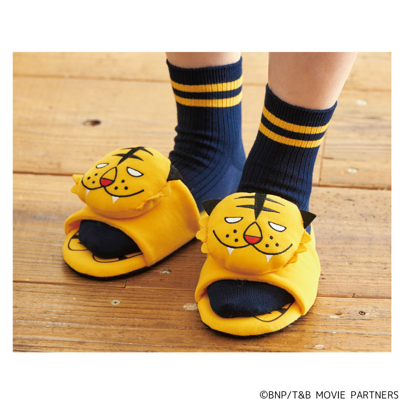 大人気アニメ『TIGER & BUNNY』の作中で主人公、鏑木・T・虎徹が愛用するキーホルダーのキャラクター「ぐったりタイガー」。コアなファンに絶大な人気を誇るこのぐったりタイガーが、フカフカのスリッパになって登場!足の甲部分にぐったりタイガーの顔をかたどったぬいぐるみつきで、足の裏に当たる部分に胴体をプリント。男性でも女性でも履ける嬉しいフリーサイズ(22~27cm)で、どこでも安心して履ける滑り止めつき。ビビッドなイエローとぐったりタイガーの絶妙に脱力した表情が毎日の生活を楽しく彩ります!