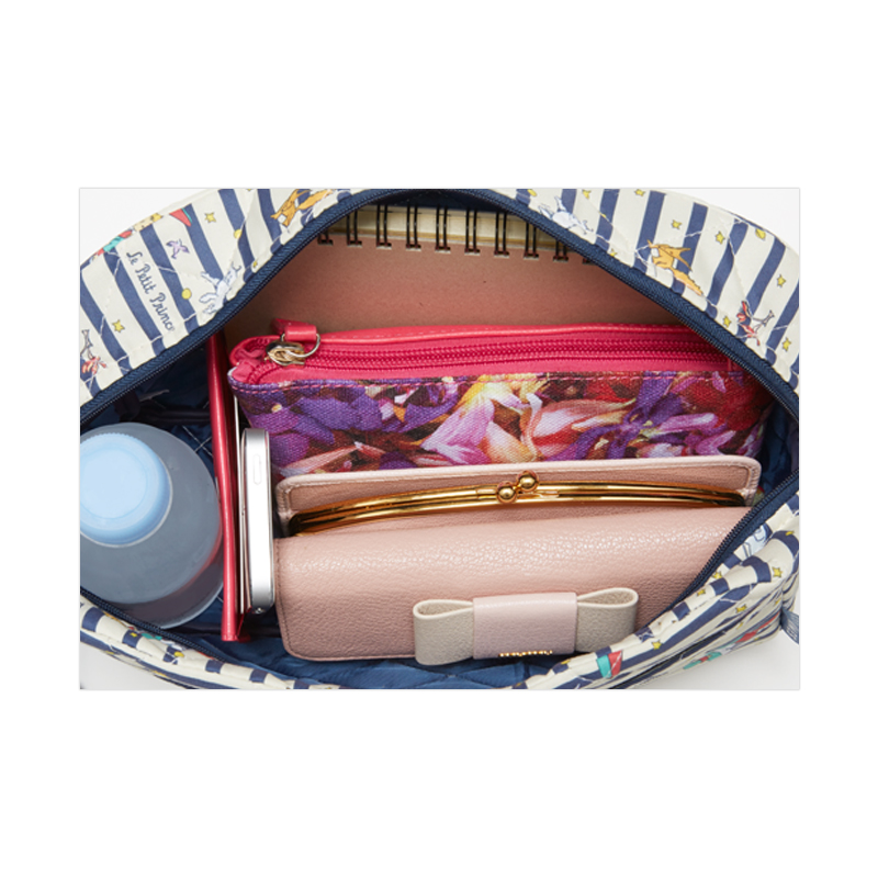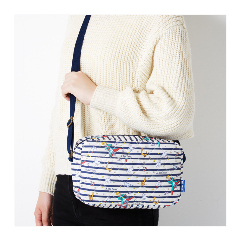 サン・テグジュペリの不朽の名作、『星の王子さま』のイラストと人気ブランド「NIMES(ニーム)」のシグネチャーであるボーダー柄をあしらった、スペシャルなバッグの登場です。キルティング素材で秋冬らしさ満点。ショルダーストラップはアジャスター付きで長さを調節することができます。マチもしっかりあるので、お出かけに必要な小物をラクラク収納。デザインと機能性を両立した才色兼備なバッグです♪