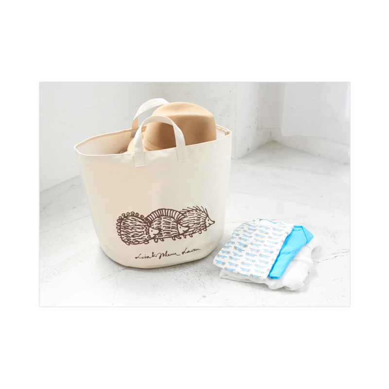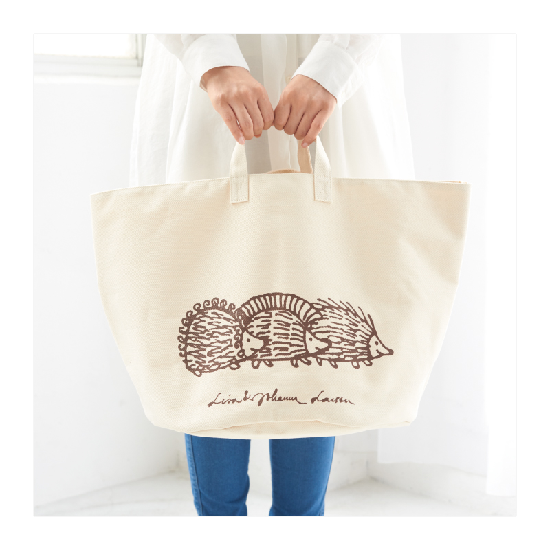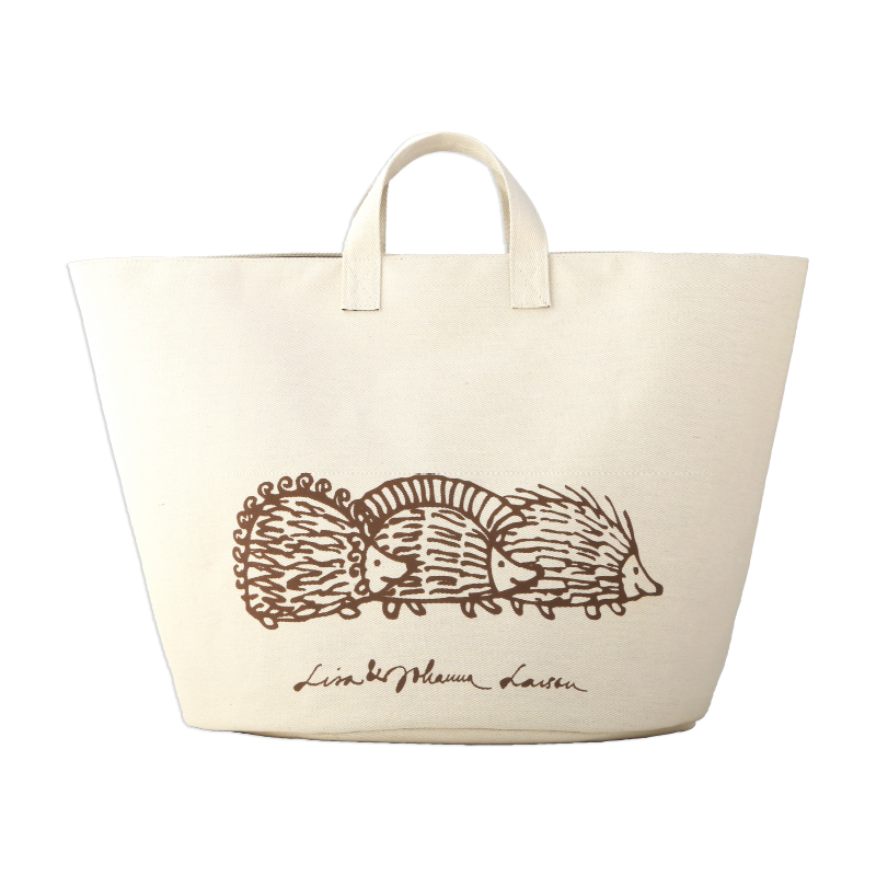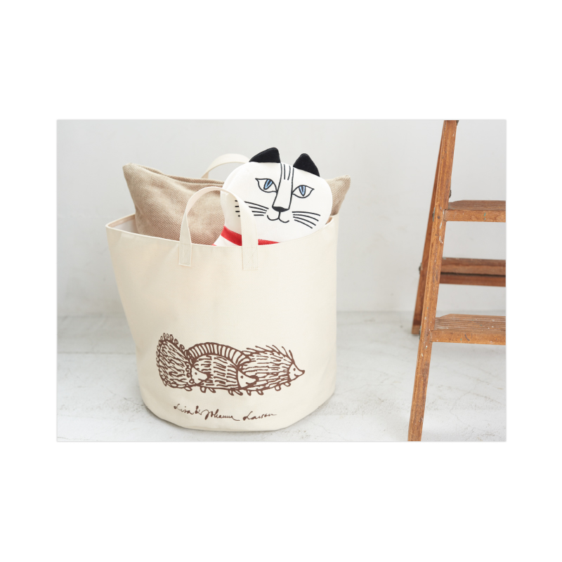 リサ・ラーソンの大きな収納トートバッグができました!ハリネズミのイラストを使用したシンプルながらもおしゃれなデザインの収納バッグは、お部屋に置いて見せるインテリアとしても活躍すること間違いなし。小物や子どものおもちゃ、クッションなどさまざまな物を収納できる便利なアイテムです。