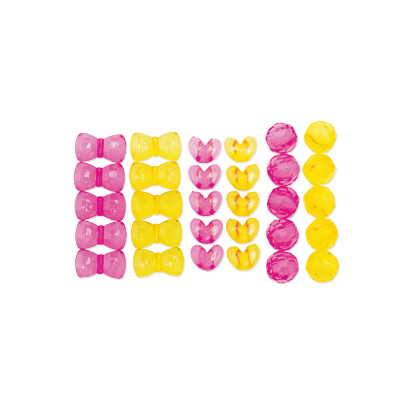 女の子に大人気のブレスレット作り!組みひもの要領でカラフルなひもを編んでいき、かわいいブレスレットが作れます。作り方はとっても簡単!オリジナルの台に、ひもを順番にかけていくだけ。好きな長さに編んでリボン風にしたり、付属のビーズをつけたり、ひものカラーを変えたりすれば、あなただけのオリジナルアクセが完成です!いっぱい作ってお友達にプレゼントしちゃおう!