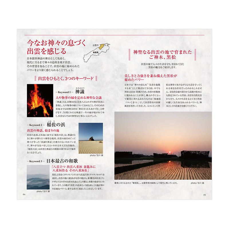 日本創世神話の舞台「出雲」。その出雲を見守ってきた希少なご神木のほか天然の素材だけを使用したブレスレットを、本誌だけの特別価格でお届けします。付属のブックレットで、パワーストーンの効果や、出雲の歴史も学べます。強力なエネルギーが凝縮した、最上の“縁結び”お守りを、ぜひお手にとってみてください。