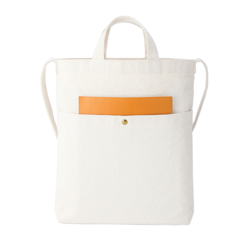 毎回好評のブランドアイテムは、ファンの皆様の声におこたえして、初の縦型トートバッグ<サイズ(約):ヨコ38×タテ38(最大)×マチ8cm>です。厚みのあるコットン100%のキャンバストートに、A4ノートが横に入る大きめの外ポケット付き。しかもボタンで留められるので、人ごみでも安心。ショルダーバッグとして、トートバッグして2WAYで使えます。
