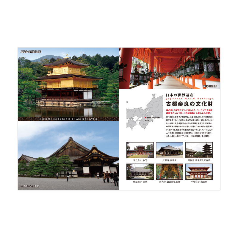 人気観光スポットの京都、奈良の世界遺産を掘り下げて約151分収録しました。京都:二条城・如意ヶ嶽・観音殿・方丈庭園・東求堂・五重塔・下鴨神社 楼門・宇治上神社 本殿・比叡山 延暦寺 東塔・産寧坂・宇治川など、奈良:春日大社 中門・元興寺 極楽堂・興福寺 東金堂と五重塔・唐招提寺 金堂・東大寺 盧舎那仏坐像・平城宮跡 朱雀門など。