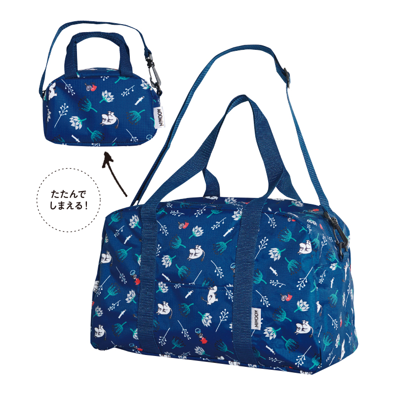 大人気の「ムーミン」から、おしゃれでビッグなボストンバッグが誕生しました。コンパクトに折りたためて、付属のお揃い柄ポーチに収納できるので、どこへでも持ち運べます!大人のスタイルにマッチするシックなカラー使いもうれしい。さまざまなシーンで大活躍間違いなしのアイテムです!
