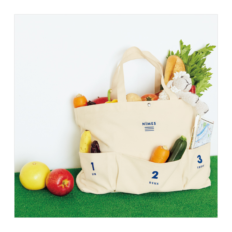 大人気フレンチカジュアルブランド「NIMES(ニーム)」の大容量&収納力抜群のベジタブルバッグが出来上がりました。野菜を立てたまま畑に近い状態で保存できるベジタブルバッグは、頑丈な厚手の素材と大きさの異なる6つのポケット&ボトルホルダーが付いた設計で、お買い物やアウトドアに最適。そのまま置いても自立するため、インドアでもインテリア収納として重宝しそう。また、あらゆるシーンに馴染むNIMESオリジナルのグラフィックは、まるでパリの朝市・マルシェの空気を運んでくれるよう。デザインと機能性を兼ね備えた大満足間違いなしのクオリティです!