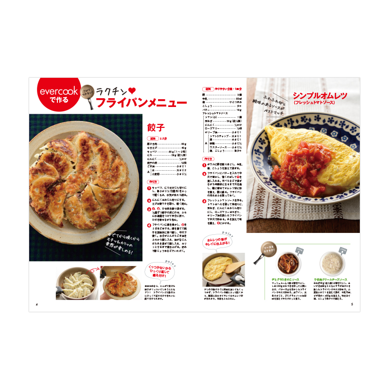 フッ素加工がはがれにくく、料理がこびりつきにくくてすごい!と巷で話題のフライパン「evercook」がついに書店に登場!正規品の直径20cmのフライパンと簡単に取り外せる着脱ハンドルにレシピブックがセットになった一冊です。独自の「アンカー構造」により、フッ素がはがれにくく、どんなものでもこびりつきにくくにお料理できます♪レシピブックには、人気の料理研究家・牛尾理恵さんによるフライパンだけで作れる時短レシピが満載!主菜からおかずまで広く網羅されているので、誰でも今日からすぐに使いこなせます。