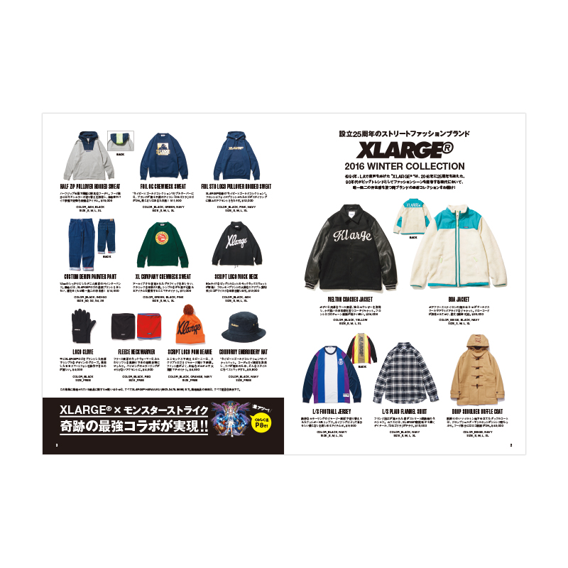世界累計利用者数3500万人を突破(2016年11月現在)した大人気スマホゲーム「モンスターストライク」(通称:モンスト)と、ブランド設立25周年を迎えたアメリカ発ストリートファッションブランド「XLARGE(R)(エクストララージ)」のスペシャルタッグによる、最強コラボレーションがここに誕生!奇跡の融合を堪能できる2大特典は、5ポケットつきマルチケース、そしてスペシャルステッカー。マルチケースは、外側の重厚なレザータッチ素材にコラボロゴをあしらい、内側にはXLARGE(R)のギミックをプラスしたリドラの総柄生地を使用。7.9インチサイズのタブレットが収納可能なスリットやカードケース、ジップポケットなど全部で5つのポケットがついた豊富な収納力が魅力です♪本誌でしか手に入れることのできないコラボロゴのスペシャルステッカーもついてくる、お得な一冊となっています。