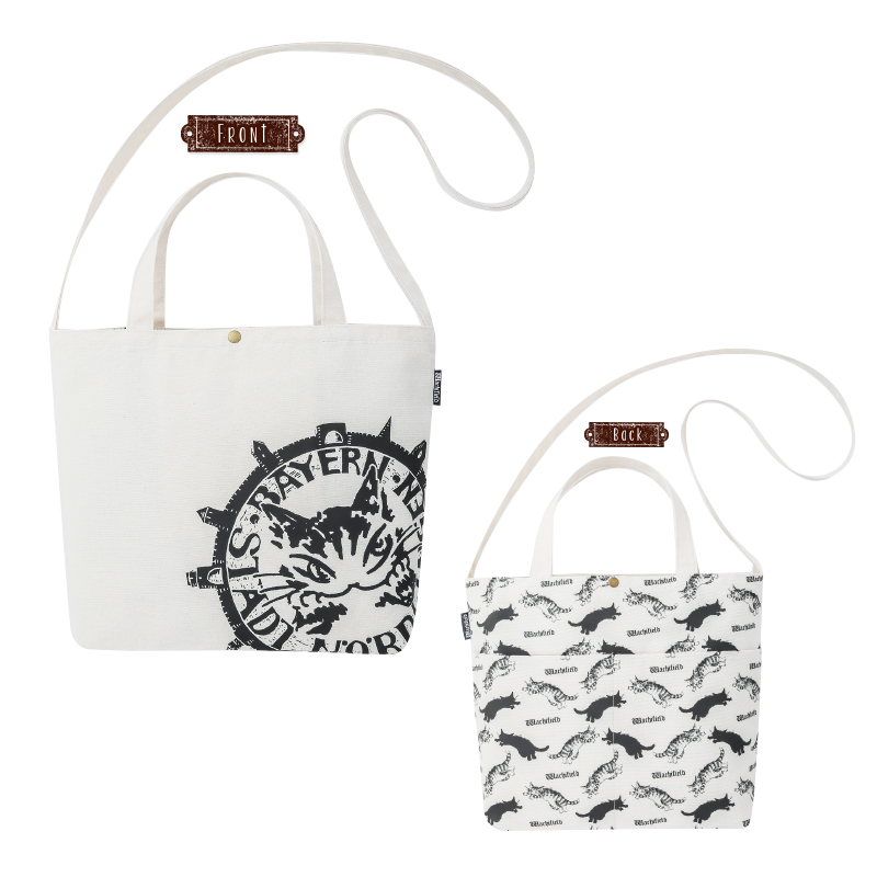 池田あきこが手がける「ダヤン」から、コットン風の生地を使った2WAYバッグが登場。前面はダヤンを大きく、後面は飛んでいるようなダヤンとシルエットの総柄でデザインし、前後面で異なる雰囲気を楽しめます。外にも大きいポケットが2つあるだけでなく、内ポケットもあって使い勝手も◎。ショルダーバッグとしてもトートバッグとしても使える2WAY仕様なので、さまざまな使い方ができます。