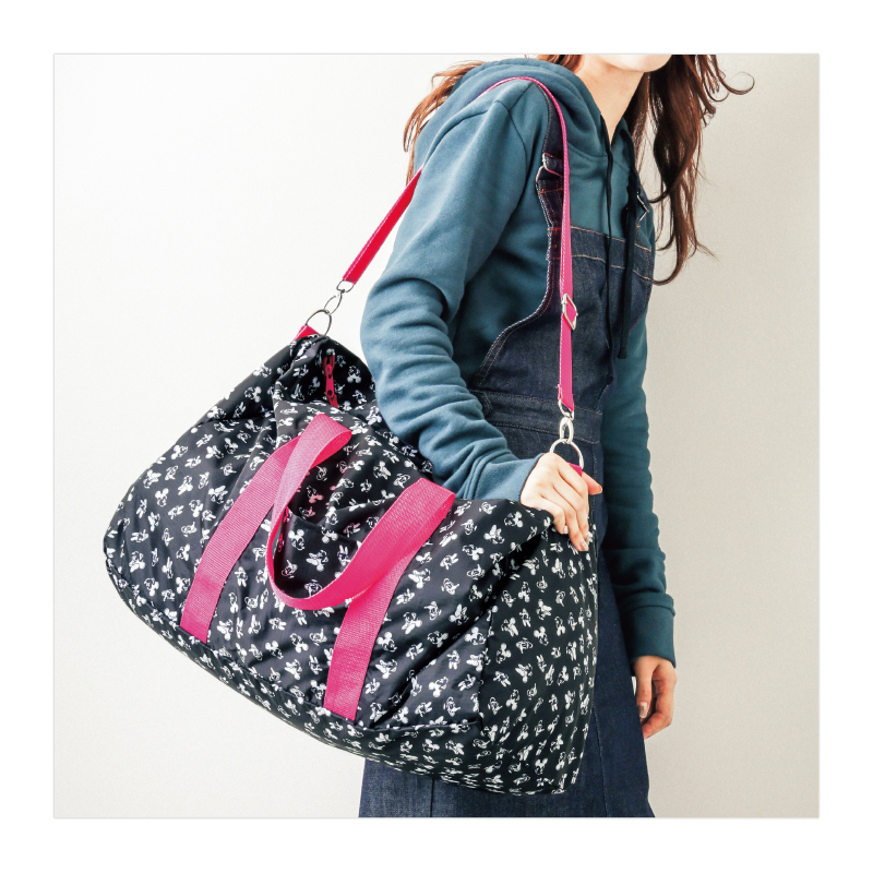 ちょっとした旅行にぴったりな、大容量ボストンバッグができました!ディズニーファンにはたまらないオリジナルデザイン。取り外し可能なショルダーストラップ付きで、ショルダーバッグとしても使えます。丈夫でたっぷり収納できるので、旅行バッグに、ジム用バッグに、かさばる荷物の収納に大活躍!よく取り出すものを入れておくのに便利な外ポケット付き。