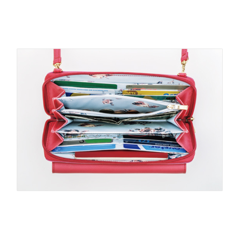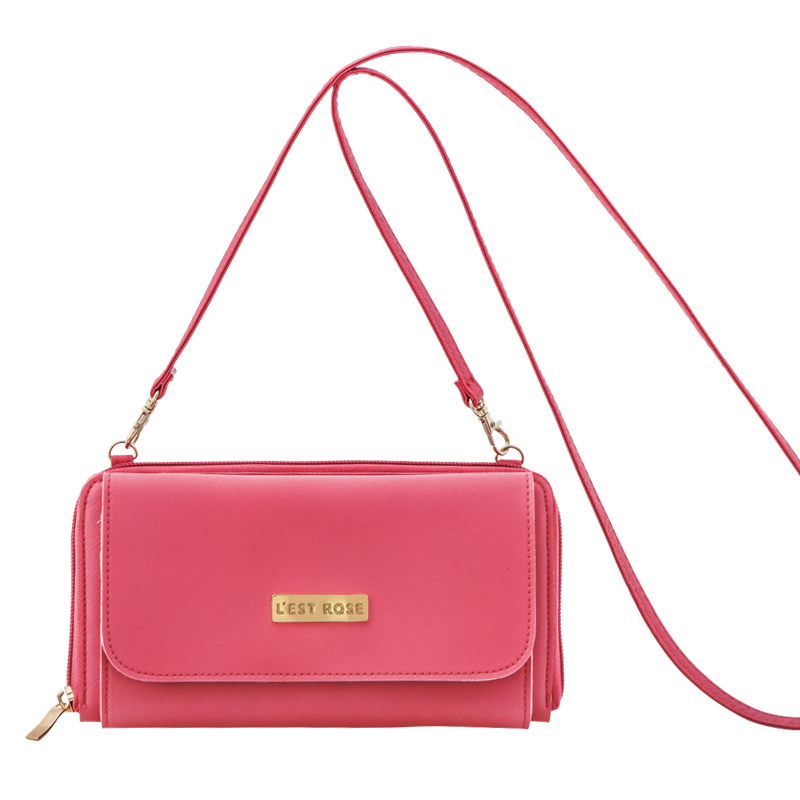 人気ブランド「L'EST ROSE(レストローズ)」から、豪華なウォレットバッグが登場!上品なピンクのウォレットバッグは、裏地が花柄でデザインされたキュートなアイテム。外ポケットにはスマートフォンも収納できるほか、お札や小銭を収納できるスペースには、仕切りやカードポケットが豊富。ショルダーストラップは取り外し可能で、お財布としても使用できます。ミニBOOKには、2016年冬の最新アイテムが満載です。