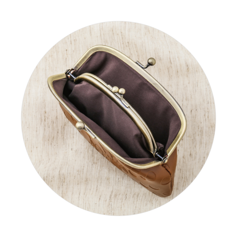 世界中で愛されるくま、クラシック プーのがま口財布が誕生!素材に本革を贅沢に使用した本格仕様。やわらかいタッチのプーとピグレットの型押しが、さりげないかわいらしさを演出してくれます。もちろん、使いやすさにもこだわりました。がま口を開くと、中にはもうひとつがま口が。小銭やお札を分けて収納することができます。鍵や印鑑など、貴重品を持ち運ぶのにも役立ってくれそう。広めの口金で中身が取り出しやすいのも嬉しいポイント。使えば使うほど手になじむ、大人の女性にぴったりな本格派のお財布です。