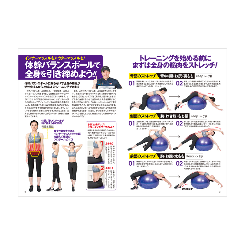 「全身ダイエット」「お腹が凹む」「腰痛改善」「姿勢矯正」etc. ダイエットに効果絶大の大ヒットアイテム「バランスボール(サイズ:直径約65cm、色:パープル)」がお求めやすいお値段で書店に初登場!手軽に膨らませることができるポンプがセットになっています。著者はインテルナツィオナーレ・ミラノの長友佑都選手など数々のトップアスリートたちを指導してきた、体幹トレーニングの第一人者・木場克己氏。木場氏考案のバランスボールを使った体幹トレーニングが自宅でできる、本アイテム限定の「11種類の特別メニュー」を紹介したミニBOOKがついています。筋力に自信のない人でも楽しく取り組めて、腹部全体が芯部から引き締まるだけでなく、姿勢のゆがみや体の痛みまでもが改善します!