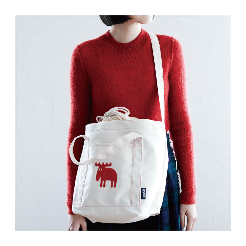 スウェーデン発の人気北欧ブランド“moz(モズ)”の巾着トートが登場。マチたっぷりの大容量でメインバッグにも最適です。開口部は巾着になっているので、荷物が外から見えにくく、中身が飛び出しにくいのが嬉しい。コットン風のナチュラルな生地に、モズのトレードマーク“ヘラジカ”のワッペンをオン。北欧らしい洗練されたテイストに仕上げました。モズの公式タグがアクセントになってぐっとおしゃれに。甘すぎないすっきりしたデザインなので、ユニセックスでお使いいただけます。小冊子ではモデルKanocoさんが、モズの最新コレクションをたっぷりご紹介します。