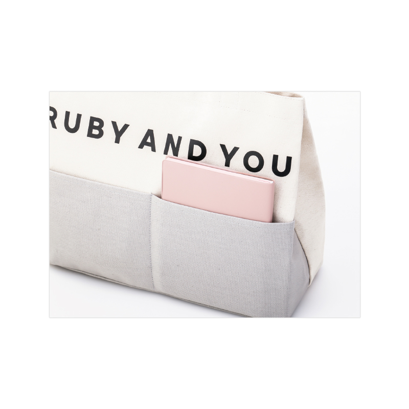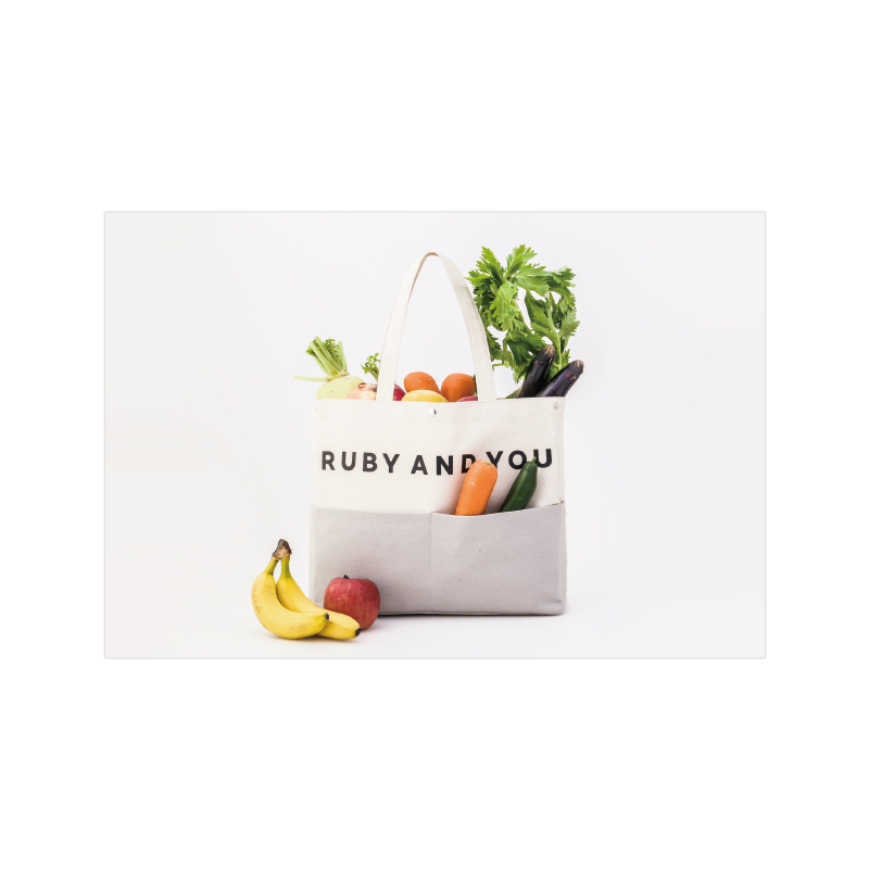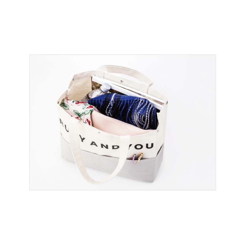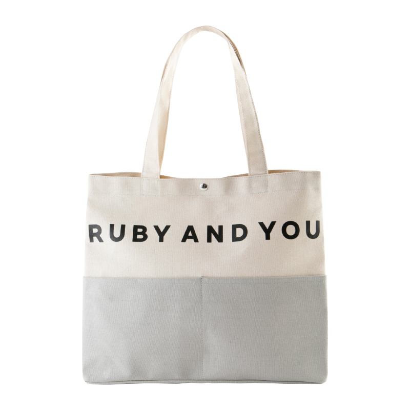 モデルのAMOがディレクターをつとめる「ルビー アンド ユー」の大容量のトートバッグが届きました。とっても軽く、サイドについたボタンで表情が変わるので、荷物の量やスタイリングに合わせてお使いいただけます。普段のお買い物に、ちょっとした旅行に、マザーズバッグにと、さまざまなシーンで活躍してくれるバッグです。カバーモデルの豊田エリーさんが、リアルクローズとして着こなします。