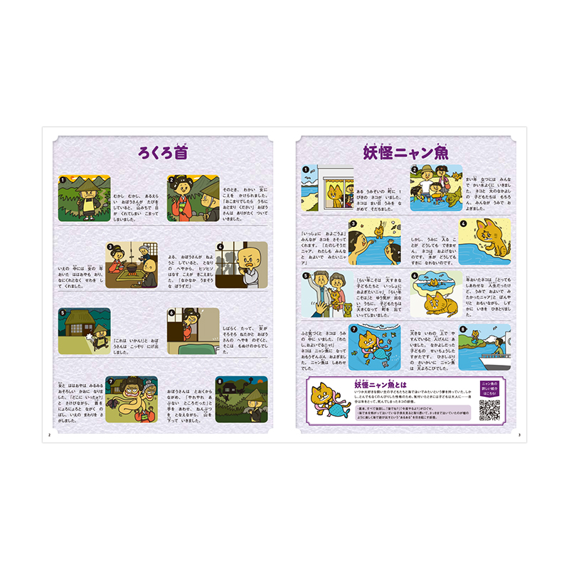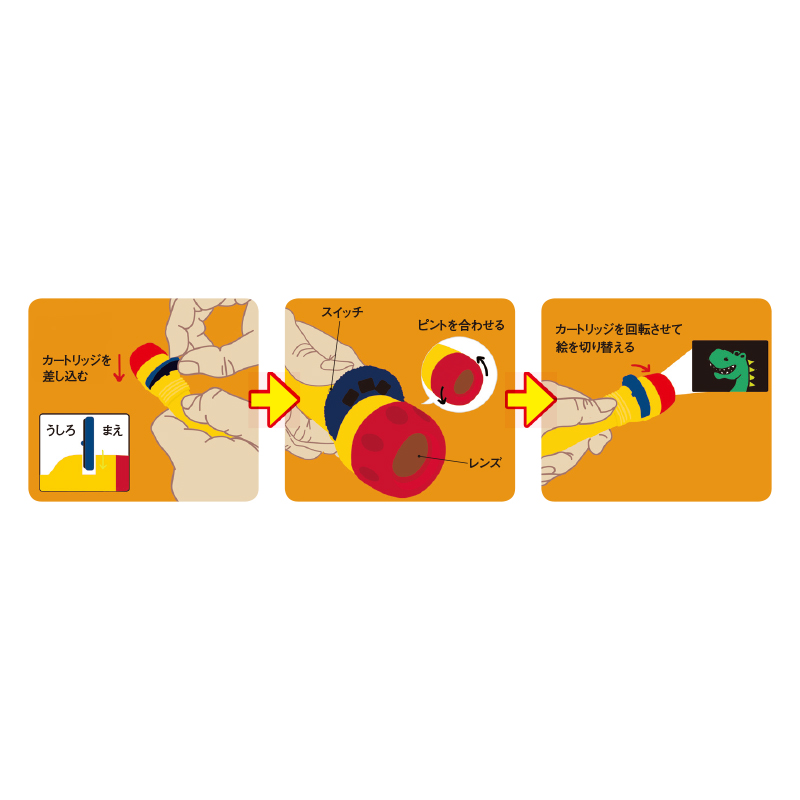 商品構成は、■プロジェクター本体 (ボタン電池 LR44 3個付き)■カートリッジ(フィルム8枚)×7つ ■おはなしBOOK(物語テキスト)の3つです。おはなしは、(1)ろくろ首(2)妖怪ニャン魚(3)妖怪ケシカス・妖怪ネリケシ(4)かっぱ(5)トイレの花子さん(6)妖怪オニだんしゃりん(7)あいさつ妖怪三銃士の7つを収録。