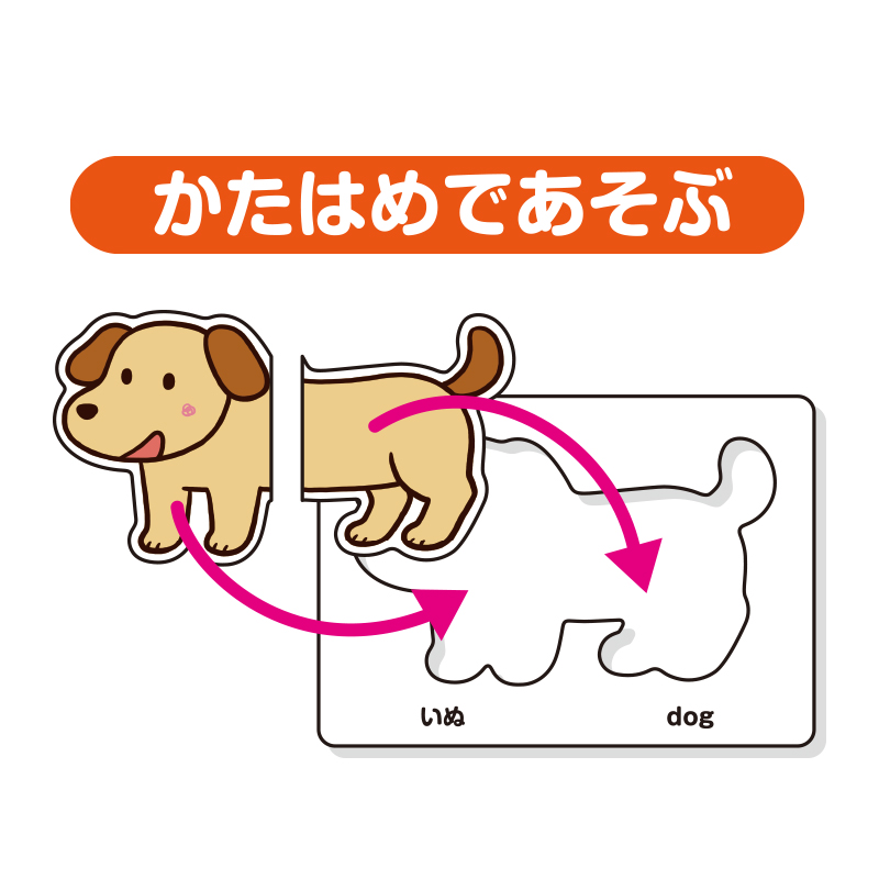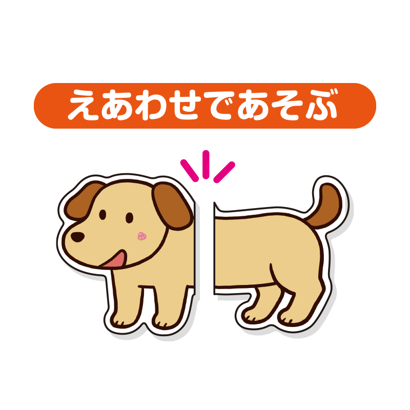 子どもが絵や形を認識しはじめる時期にぴったりの、楽しく遊べて育脳にもなるえあわせ&かたはめカードです。動物が描かれた2枚のカードでえあわせをし、その合わせた絵柄を白い枠にはめて(=かたはめ)遊びます。マグネット製なので丈夫で、冷蔵庫などに貼って遊ぶこともできます。