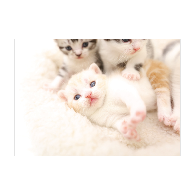『ねこもふ。DVD BOOK』シリーズに登場した子ねこたちの、もっともかわいい写真を厳選しポストカードにしました。ポストカードなので切り離して部屋に飾ったり、大好きなあの人へ送ることもできます。ポストカードは全部で24枚入っており、本をギフトとして贈るのもオススメです。
