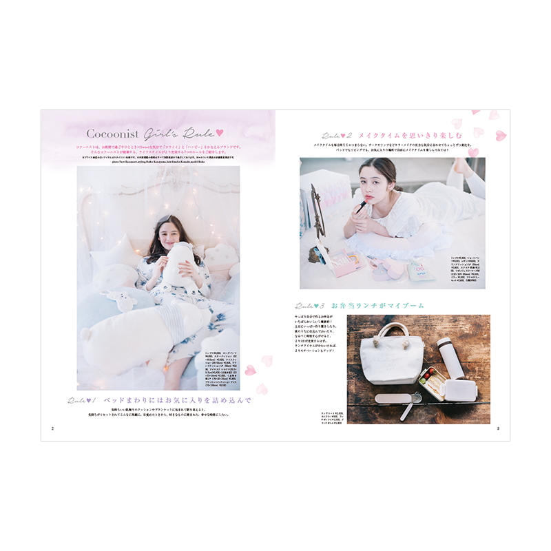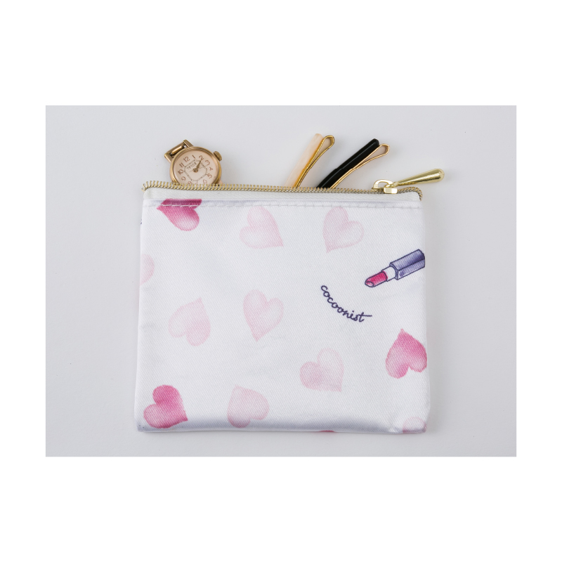 人気ブランド「コクーニスト」より、かわいすぎるポーチの2点セットが登場。かわいさだけじゃなく、機能性にもこだわりぬいたドレッサーポーチは、ポーチなのに、鏡が立つ!計算された構造です。さらにお揃い柄のコロンとしたフォルムのキャンディポーチつき。持っているだけでテンションが上がりそうなハート柄もポイントです。モデル琉花さんによる「Cocoonist girls Rule Book」では、毎日が楽しくなるような7つのルールをご紹介します。