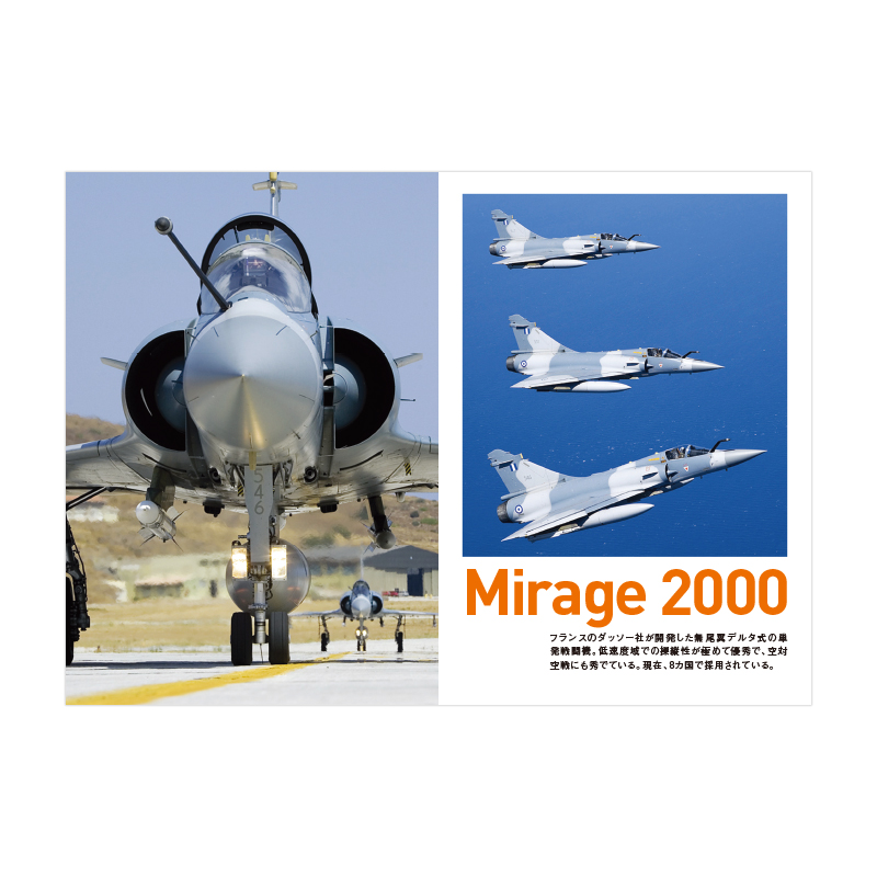 戦闘機「ミラージュ2000」と軍用輸送機「エアバスA400M」のコックピットからの映像を収めたDVD BOOKです。ミラージュ2000(Mirage 2000)はフランスのダッソー社製の戦闘機であり、フランス空軍の他に8カ国の空軍に採用された名機です。エアバスA400M(Airbus A400M) はエアバス・ミリタリー社が開発している軍用輸送機であり、西欧各国による国際共同開発が行われ2013年から運用されています。両機のコックピットからの迫力ある映像を中心とし、パイロットの視点を体感することができます。