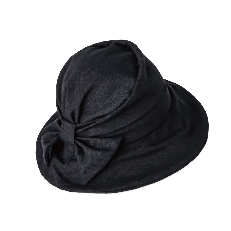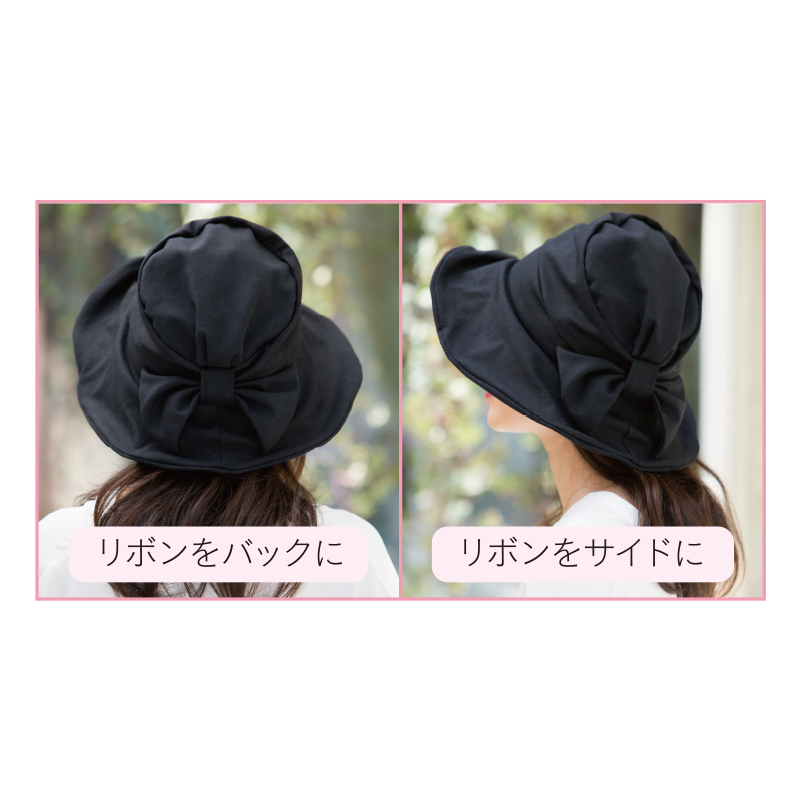 UVカット率、なんと99%以上!美容の大敵・紫外線からお肌を守る、おしゃれで機能的なUV対策ハットができあがりました。ハットは上品なブラックで、紫外線遮蔽効果が高く、どんなファッションにも合わせやすいカラー。大きめのつばとリボンのあしらいが女性らしく、小顔&美人見え効果も抜群。ソフトワイヤー入りで形が調節でき、小さく折りたためて持ち運びにも便利といいことずくめ!毎日のお出かけの必需品になること間違いなしのアイテムです。