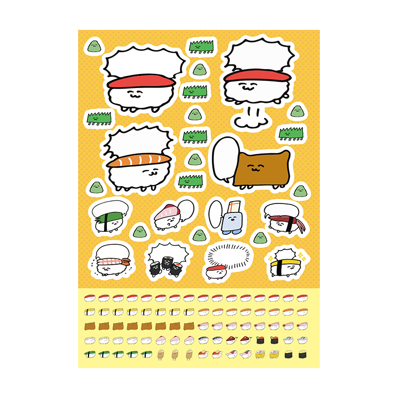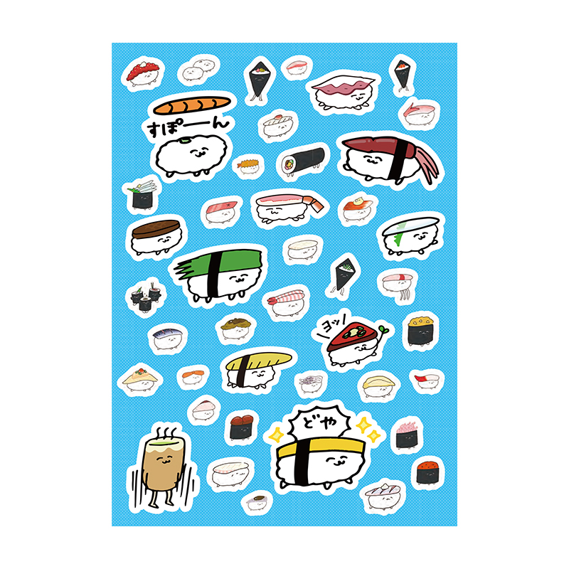 Twitter発、LINEスタンプも大人気の脱力系寿司キャラクター「おしゅしだよ」から、初のステッカーブックが登場!約タテ15×ヨコ24cmのおしゅしビッグサイズステッカーはノートやPCに貼ったらインパクト大!そのほか、書き込めるふきだし付きステッカーや、手帳に貼れるミニシールなど遊び心満載♪レアネタも勢ぞろいでたっぷり300枚以上の大ボリュームステッカーブックです!へいおまち!