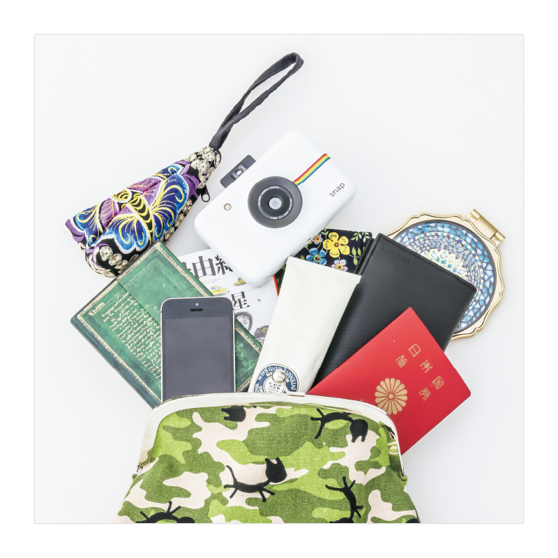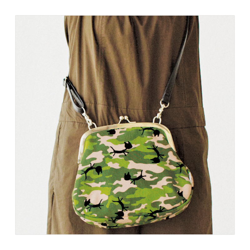 カリスマモデル・タレントとして活躍しながら、ブランド「cat in the closet」を手がける高見恭子。本誌は、彼女の好きなもの、お家のインテリアなどを紹介する冊子と自身がデザインしたがま口バッグがセットになったスペシャルブックです。どんなコーディネイトにも合わせやすいカモ柄のバッグは、しっかりとしたがま口で、使い勝手のいいサイズに仕上がりました。