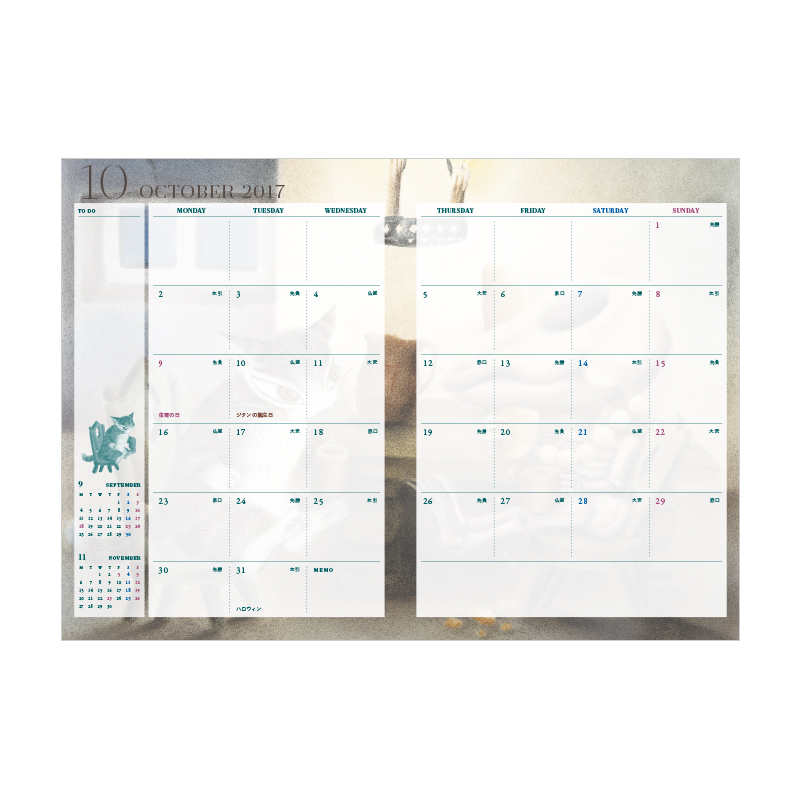 落ち着いた色合いが大人にも◎な、ダヤンデザインの手帳が今年も登場!ダヤンのイラストをたっぷり使った手帳は、絵本の表紙のようなデザインとやさしい色合いが特徴のカバーにもご注目。見開き1カ月のマンスリータイプの手帳。たっぷり書き込める便利なノートや、全国主要都市の鉄道路線図に加えて、ダヤングッズが購入できるショップリストも収録!ダヤンに癒やされ、幸せな一年が過ごせそうな一冊です。巻末にはかわいいシールも!