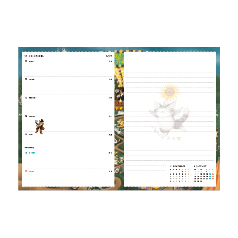 ベイビーダヤンの手帳が今年も登場!ベイビーダヤンのかわいいイラストをたっぷり使ったデザインで毎日楽しく過ごせそう。絵本の表紙のようなデザインとやさしい色合いが特徴のカバーにもご注目。見開き1カ月のマンスリー&見開き1週間のウィークリーを収録した、全192ページの大ボリュームで、たっぷり書き込めます。そのほか、たくさん書き込める便利なノートや、全国主要都市の鉄道路線図に加えて、ダヤングッズが購入できるショップリストも収録!巻末にはかわいいシールも!