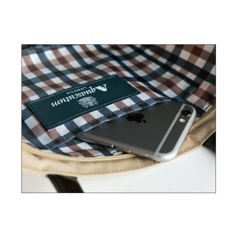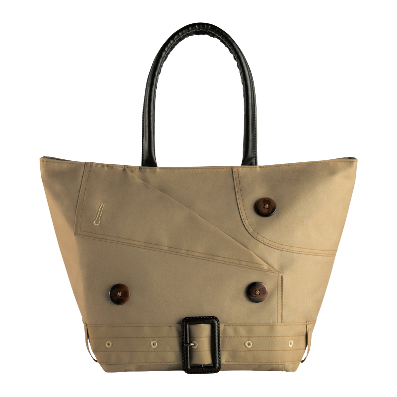 アクアスキュータムの歴史は仕立て職人のジョン・エマリーが、ロンドン西部の高級住宅地に紳士服店を創業した1851年に遡ります。創業時から、優れた職人技術と技術革新により業界の最前線をゆくブランドでした。アイコン的存在であるトレンチコートは、霧雨の街ロンドンで紳士たちの身だしなみを守り、その後数々の過酷な戦場でその機能性を証明し、イギリスファッション界になくてはならない存在となりました。そんな世界中で長く愛されるトレンチコートのディテールを落とし込んだバッグが完成。トレンチの特徴的なデザインを遊び心満載に再現しています。定番のベージュのトレンチ!