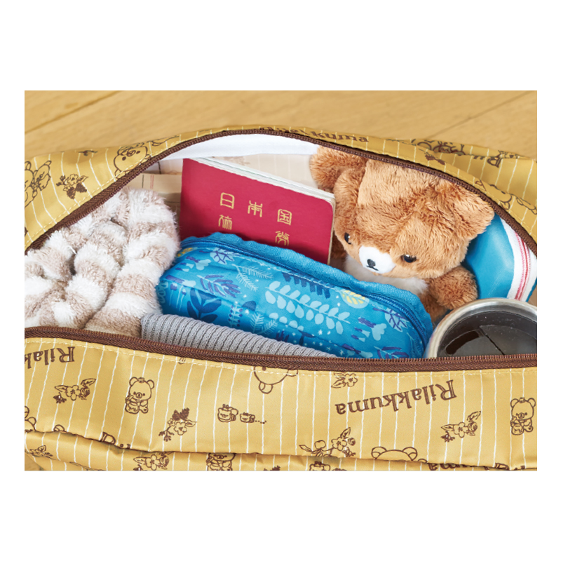 リラックマがはちみつを収穫するストーリーをモチーフにしたボストンバッグが登場!リラックマやコリラックマはもちろん、チャイロイコグマも登場したオリジナル総柄がとってもキュート。秋らしいニュアンスのあるベージュに、白のストライプをあわせて大人かわいく仕上げました。荷物がたっぷり入るので、旅行のサブバッグとして、アウトドア、ジムの着替え用のバッグとして、さまざまな場面で活躍すること間違いなし◎「はちみつの森の収穫祭」のストーリーや新商品情報がたっぷり入ったブックレットがついて、本体1,380円+税のスペシャルプライスでお届け!