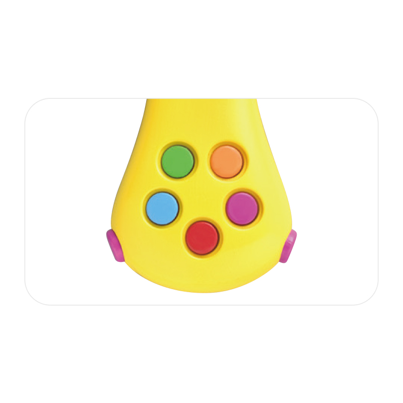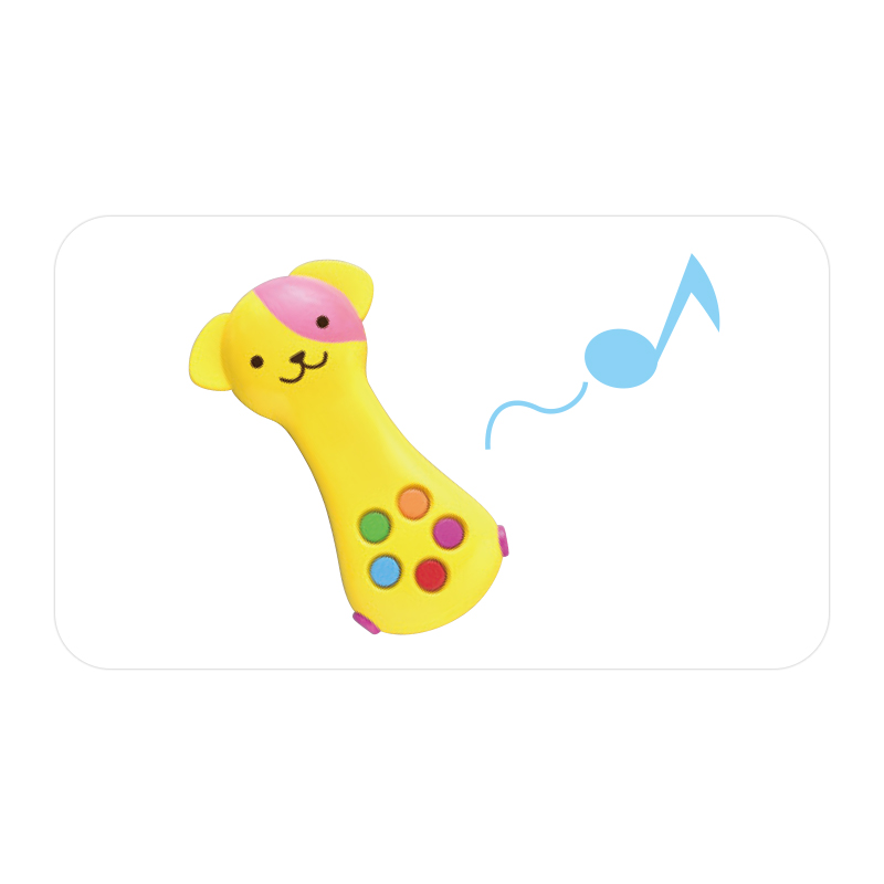 脳科学者 篠原菊紀先生監修、赤ちゃんの定番おもちゃ「にぎにぎ」形の、音がでるメロディー玩具です。把握反射の時期の赤ちゃんがぎゅっと握った時に音がでるよう、持ちやすいふくらみ部分にボタンをつけました。5つのメロディボタンからは、“赤ちゃんが泣きやむ”と言われている「タケモトピアノの歌」をはじめ、お母さんのお腹の中で聞いていた音を再現した「胎内音」、クラシック曲2曲と、童謡6曲の計10曲のメロディーが流れます。赤ちゃんの視覚・触覚・聴覚を刺激して楽しく育脳できる一冊です。