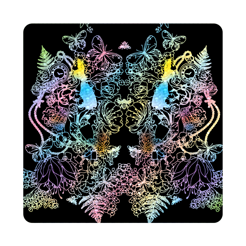 森の中に迷い込んだアリスをイメージし、左右対称で描かれたアリスの世界。