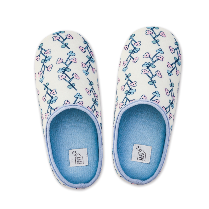 「pou dou dou TIME(プードゥドゥタイム)」は、自分らしいカジュアルスタイルが楽しめる、ファッションブランド「pou dou dou(プードゥドゥ)」から生まれたルームウェアのライン。カラフルな色や柄、肌ざわりのよい素材、遊びごころのあるディテール……。チャーミングな女性にぴったりの、いま話題のブランドです。そんなプードゥドゥタイムから、オリジナルのルームシューズが登場!甘さひかえめの、北欧テイストの花柄が大人かわいいデザイン。アイボリー×ピンク×ライトブルーのパステルカラーをあわせて、ハウスウェアにふさわしい清潔感あふれる印象に。もちろん、履き心地にもこだわりが!インソールは肌ざわりのよいパイル地を採用。クッション性もあるので、やわらかな履きごこちになっています。ソールは、リッチなスウェード調。濃いめのキャメルは汚れが目立ちづらく、ちら見えしたときもキュート!インソールにはブランドの織りタグをオン。履いたときはもちろん、脱いだときのかわいさも抜群です。いま大注目のモデル・モトーラ世理奈さんをモデルにむかえ、「朝の時間」をテーマに最新コレクションを撮りおろしたミニBOOKも必見です。プードゥドゥタイムの魅力が詰まった一冊をお見逃しなく!