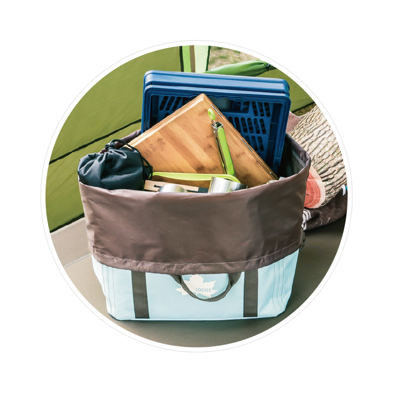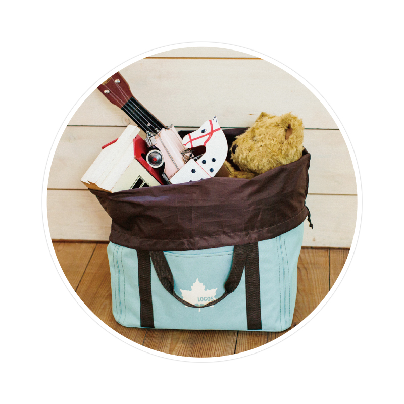 アウトドアシーンはもちろん室内でも使える収納コンテナバッグ付きBOOKです。底板付きで安定感があり、ステッチにより形崩れしにくいように設計されています。軽量で耐久性に優れ、ロゴスのアウトドアギアを運ぶのにも最適です。巾着付きなので、バッグいっぱいにものを詰め込んでも中身が飛び出る心配がありません。室内でおもちゃや衣類をしまうなど、収納インテリアとしても重宝します。