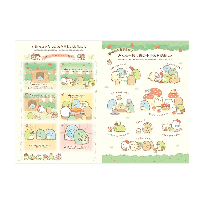 便利でかわいい収納バッグ大小2個&すみっコのお話や最新情報が盛りだくさんのミニブックがセットになって、本体2350円+税のスペシャルプライスでお届けします!あなたのおへやのすみっこに、ぜひお迎えしてください♪