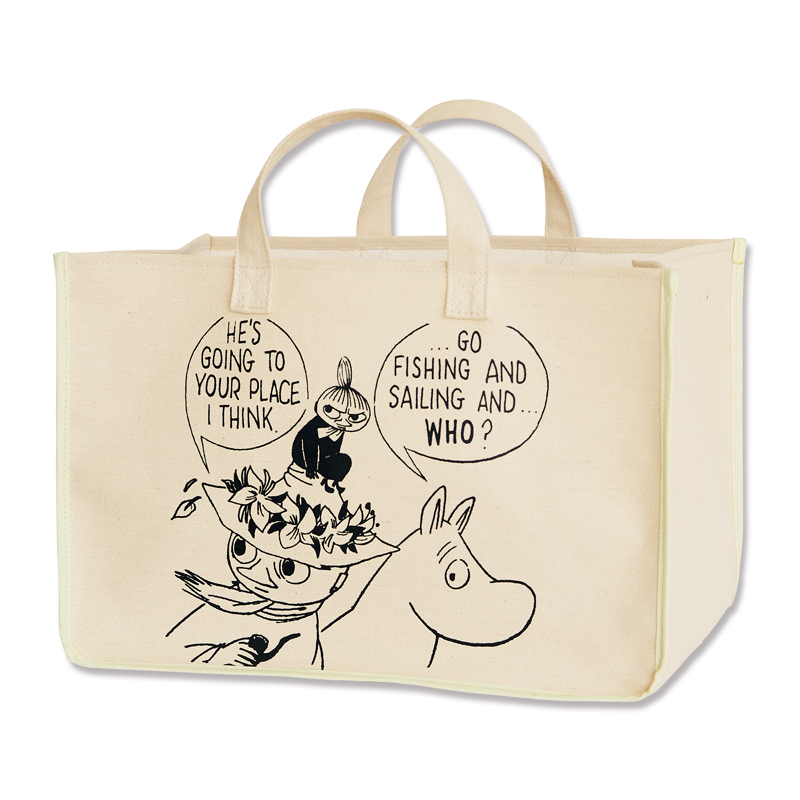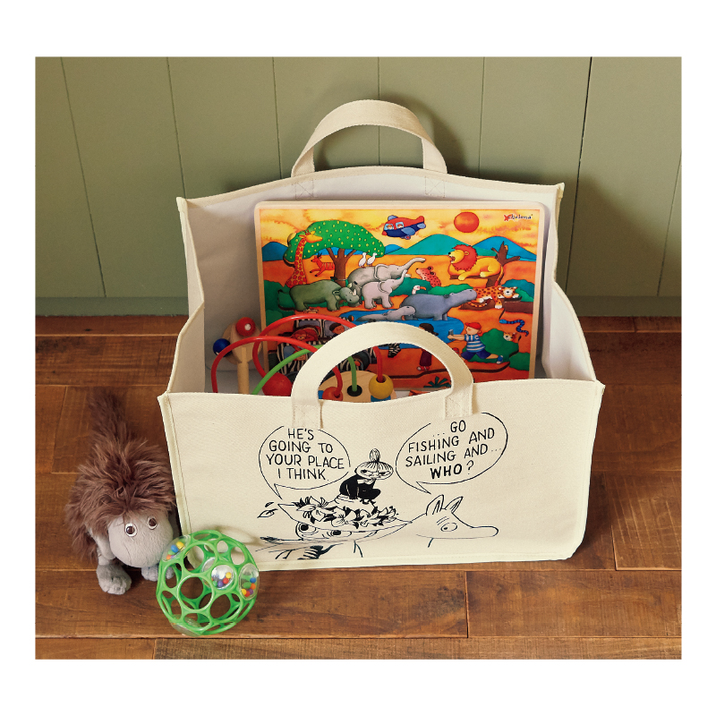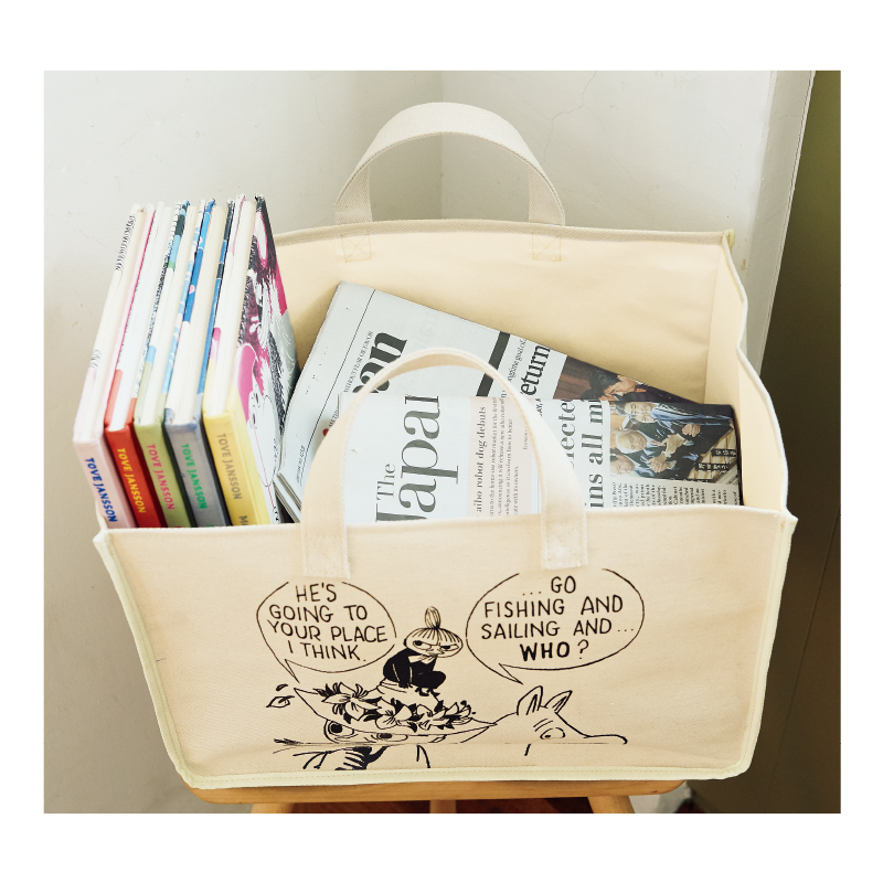 ムーミン・スナフキン・リトルミイのがプリントされた、おしゃれな収納トートバッグが登場!たっぷり大容量で、衣類や本を収納したり、クッションやブランケットなどをまとめたり、子どものおもちゃ入れにしたり……と活用方法は無限大。スクエア型だから部屋の隅やカラーボックスにすっきりと収まり、使い勝手はバツグン。便利な持ち手付きで、バッグのように持ち運べるので、移動もらくらく。ナチュラルな生成りカラーで、シックにお部屋になじみます。ひとつ置いておくだけでお部屋が片付き、インテリアとしても素敵な収納トートバッグです。